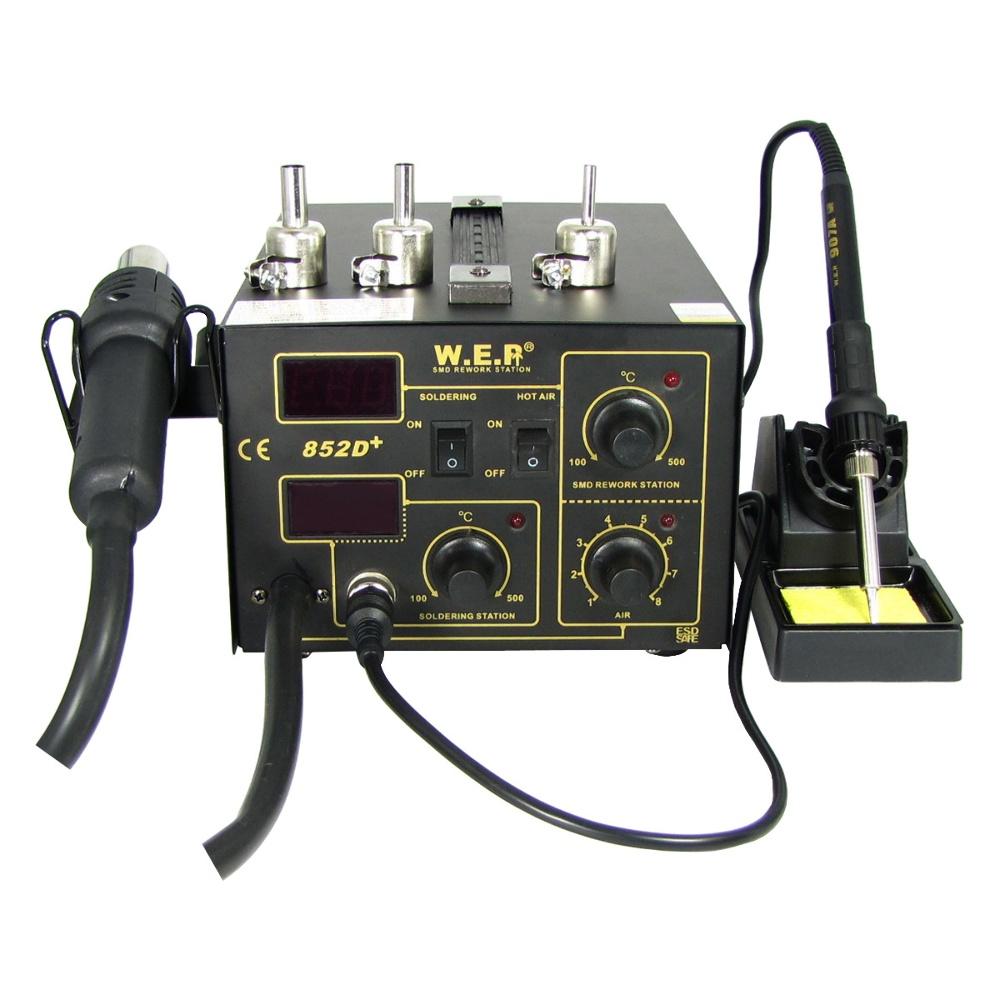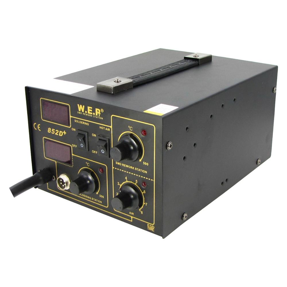 Термовоздушная паяльная станция WEP 852D+ - это мощная и функциональная паяльная станция, которая работает под управлением микропроцессора обеспечивающим возможность плавной регулировки температуры и сохранение определенной стабильности нагрева при работе.
