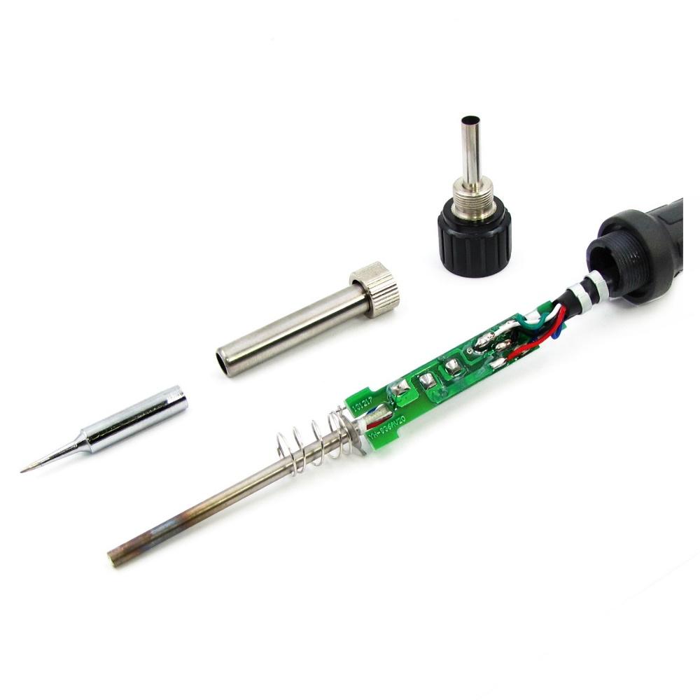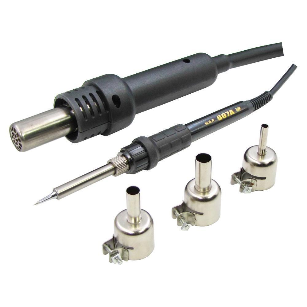 Наличие термофена дает возможность выполнять работы в устройствах с поверхностным монтажом - SMD. Термофен значительно упрощает работу с микросхемами любых типов: DIP, SIP, SOIC, QFP, LCC, PLCC, TSOP, SSOP, ZIP и другие. Также станция WEP 852D+ позволяет выполнять ремонт современных печатных плат с применением BGA микросхем, для этого используются сменные насадки для фена которые позволяют сфокусировать поток воздуха и сменные жала для паяльника различных размеров и форм.