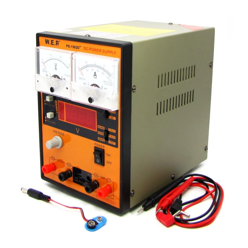 Блок питания WEP PS-1502D+, 15V, 2A, цифровая/стрелочная индикация, RF индикатор, тестер, автовосстановление после КЗ