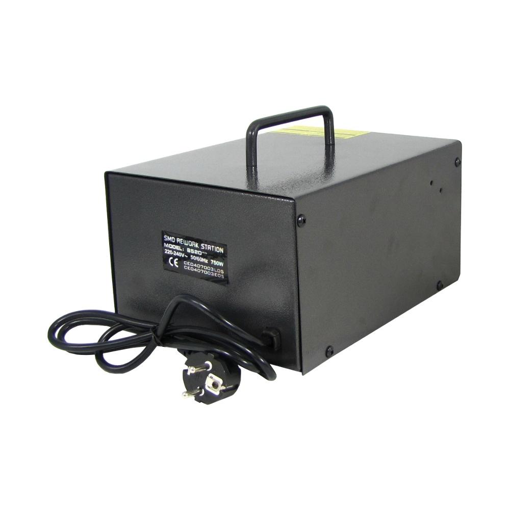 Наличие термофена дает возможность выполнять работы в устройствах с поверхностным монтажом - SMD. Термофен значительно упрощает работу с микросхемами любых типов: DIP, SIP, SOIC, QFP, LCC, PLCC, TSOP, SSOP, ZIP и другие. Также станция LUKEY 852D+FAN позволяет выполнять ремонт современных печатных плат с применением BGA микросхем, для этого используются сменные насадки для фена которые позволяют сфокусировать поток воздуха и сменные жала для паяльника различных размеров и форм.