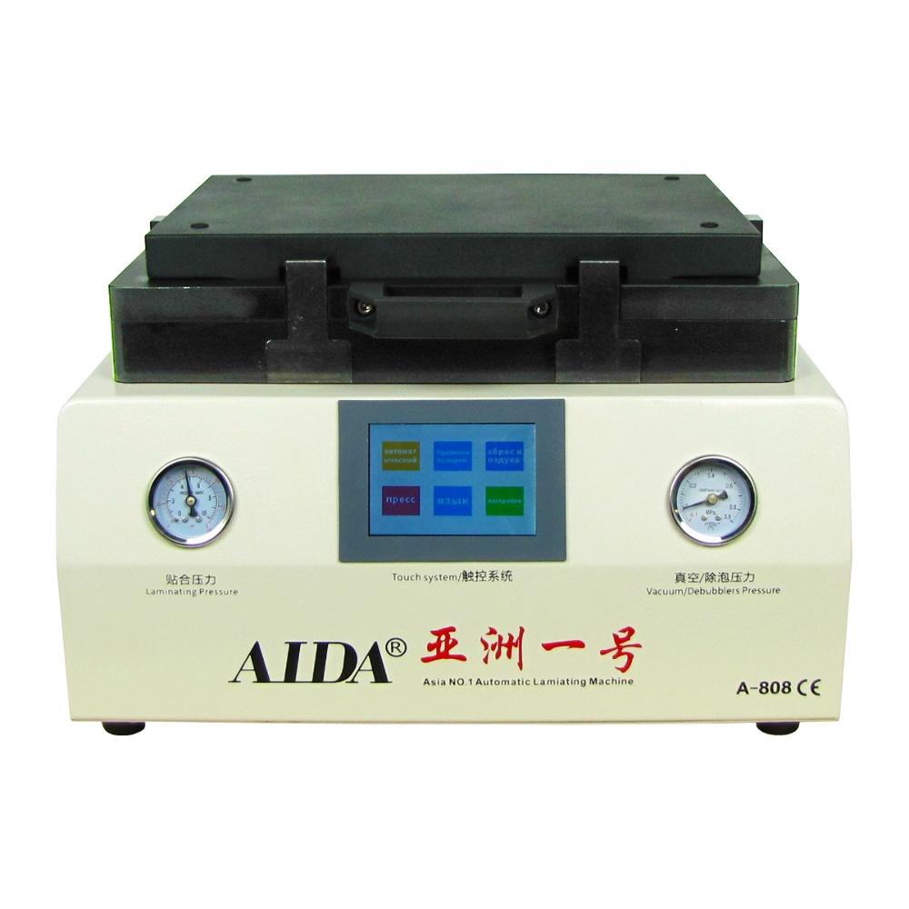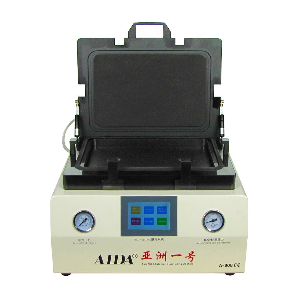 AIDA A808 - полностью автоматический пресс-ламинатор компактных размеров. Ламинатор оснащен автоматической крышкой, а также встроенным компрессором. Удобное и понятное сенсорное управление обеспечивает комфортное использование аппарата. Время ламинации составляет около 10 минут. AIDA A808 дает возможность работы с дисплеями типа EDGE. Компактные размеры позволяет использовать в небольших мастерских, где нет много места для размещения оборудования.