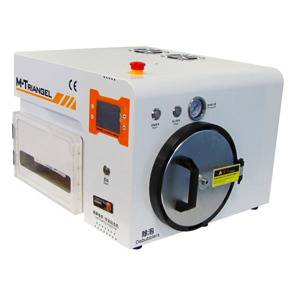 Аппарат с вакуумным ламинатором и автоклавом M-Triangel MT-102 9" (встроенный насос, диаметр и глубина автоклава d=16см, L=17см, ламинатор L=16 х W=17.5 см) - надежное оборудование, предназначенное для ремонта дисплейных комплектов любых смартфонов. Аппарат оснащен вакуумным насосом и воздушным компрессором. Автоклав оборудован автозамком запирания дверцы. Компактные размеры камеры позволяют разместить гаджеты, максимальная диагональ которых составляет 9 дюймов. Ламинатор имеет отсекатель пузырьков и встроенный вакуумный насос. Сенсорный дисплей позволяет отследить необходимые параметры, и, при необходимости, откорректировать их. M-Triangel MT-102 9" - это бесшумная машина для работы в помещениях требующих тишину производства, таких как: магазины, торговые центры, общественные помещения.