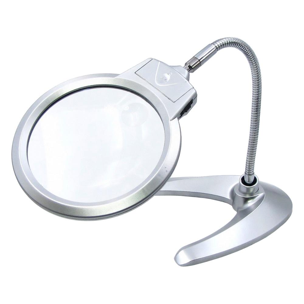 Лупа двойная на гибкой ноге с подставкой MG4B-10 с LED-подсветкой (большая лупа d=125 мм, 2x; малая лупа d=26 мм, 5x)