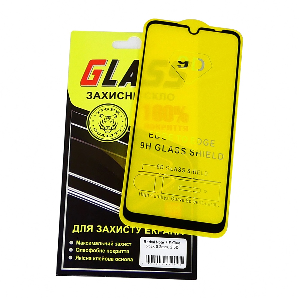 Защитное стекло для Xiaomi Redmi Note 7/ 7S/ 8 Full Glue (0.3 мм, 2.5D, чёрное)