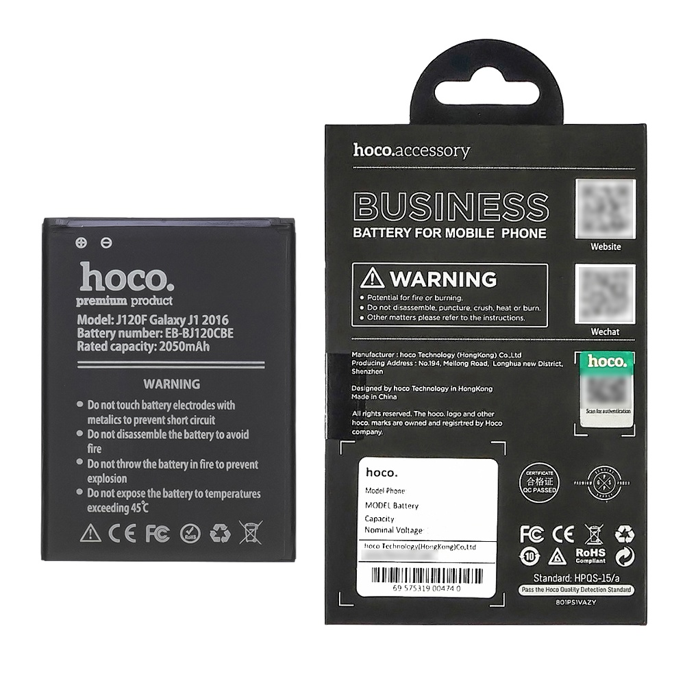 Аккумулятор Hoco EB-BJ120CBE для Samsung J120 J1 (2016)/ J120H, а также другие запчасти и аксессуары для мобильных телефонов и планшетов можно выгодно приобрести оптом в интернет-магазине MasterClub.