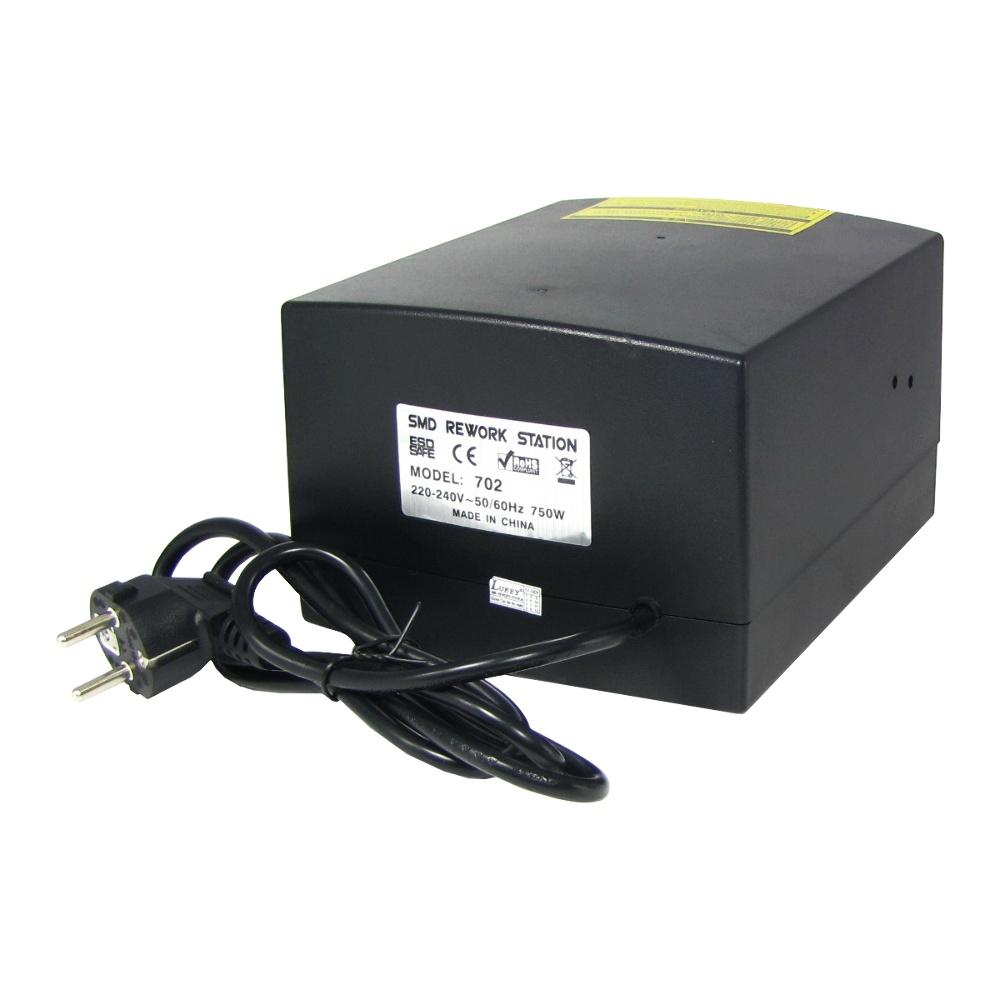 Наличие термофена дает возможность выполнять работы в устройствах с поверхностным монтажом - SMD. Термофен значительно упрощает работу с микросхемами любых типов: DIP, SIP, SOIC, QFP, LCC, PLCC, TSOP, SSOP, ZIP и другие. Также станция LUKEY 702 позволяет выполнять ремонт современных печатных плат с применением BGA микросхем, для этого используются сменные насадки для фена которые позволяют сфокусировать поток воздуха и сменные жала для паяльника различных размеров и форм.