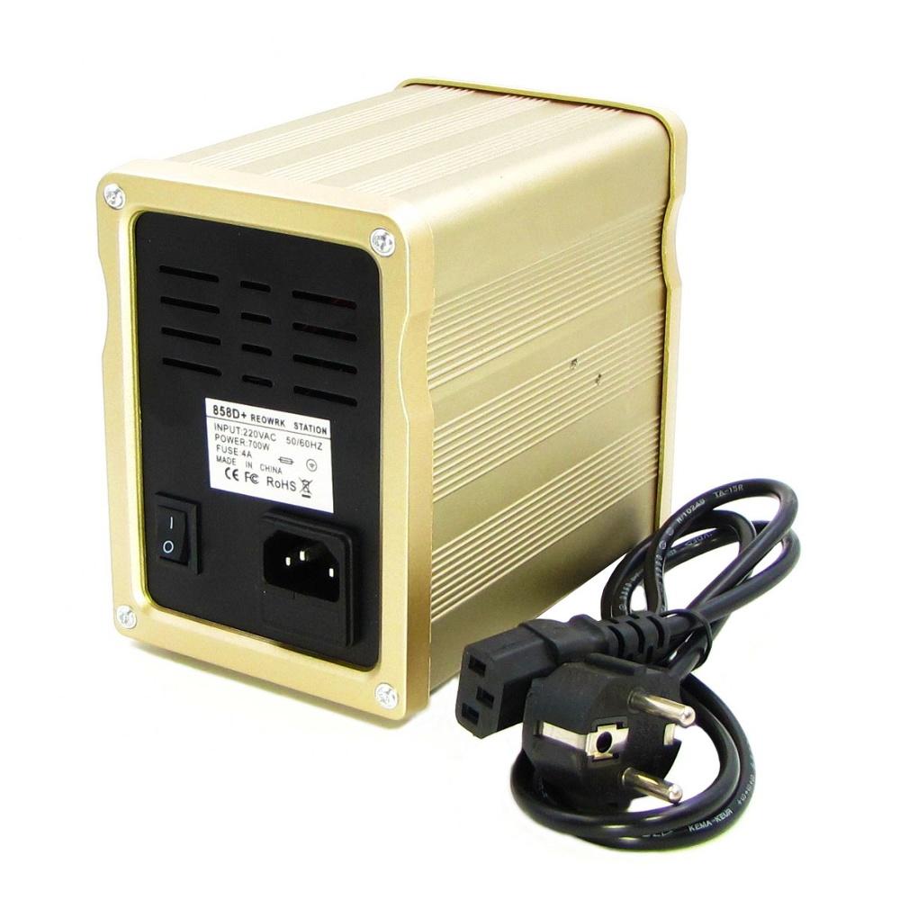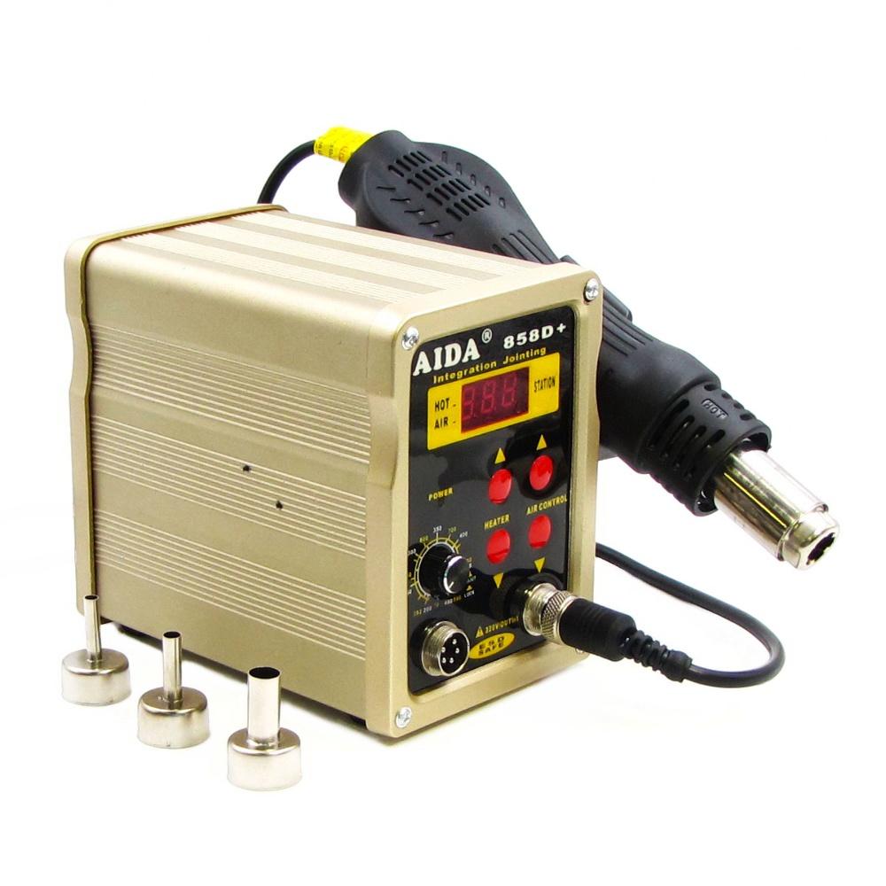 Термовоздушная паяльная станция AIDA 858D+ - это компактная и мощная паяльная станция, которая работает под управлением микропроцессора обеспечивающим возможность плавной регулировки температуры и сохранение определенной стабильности нагрева при работе.