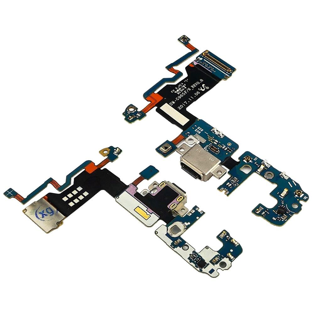 Разъём зарядки для Samsung G965 Galaxy S9 Plus на плате с микрофоном и компонентами