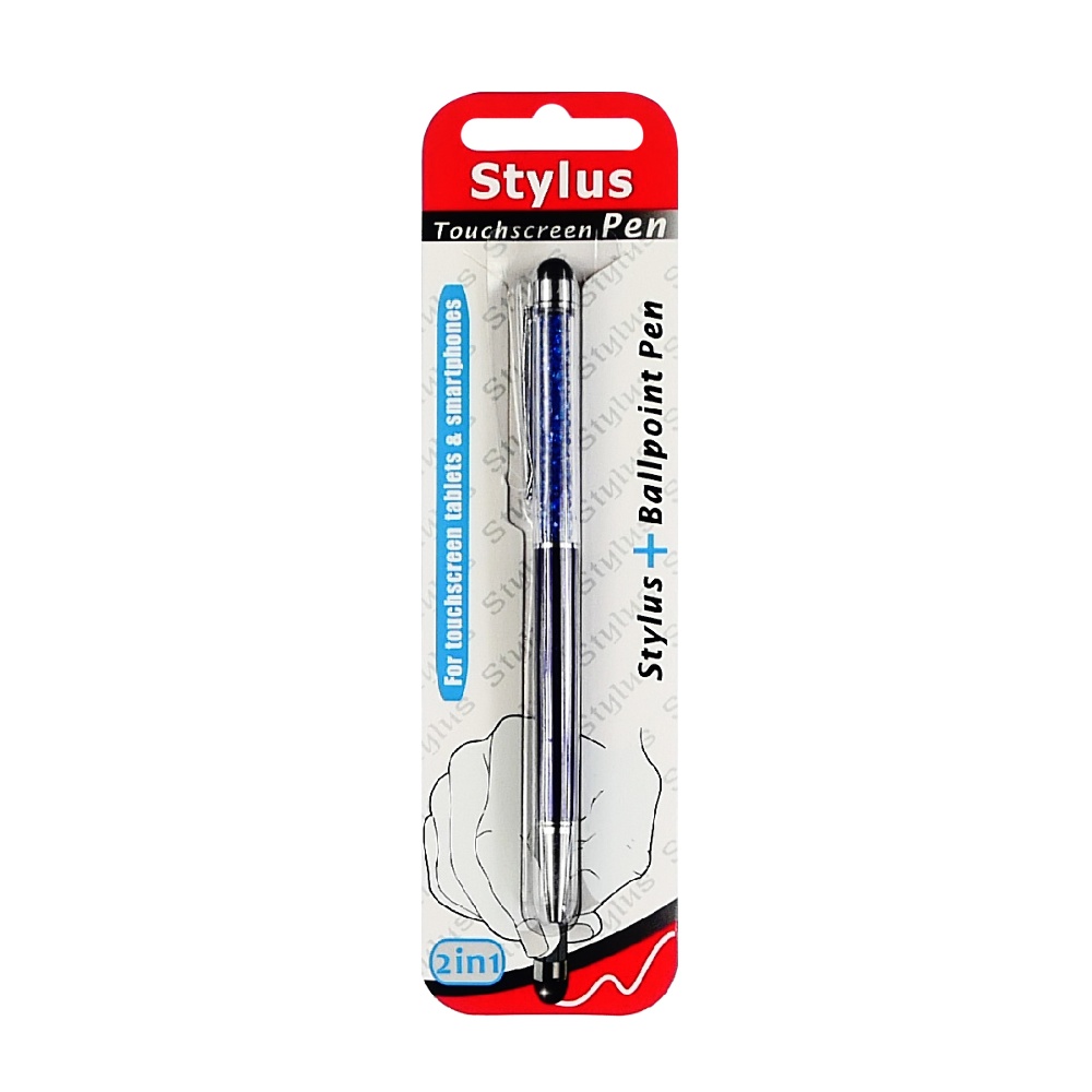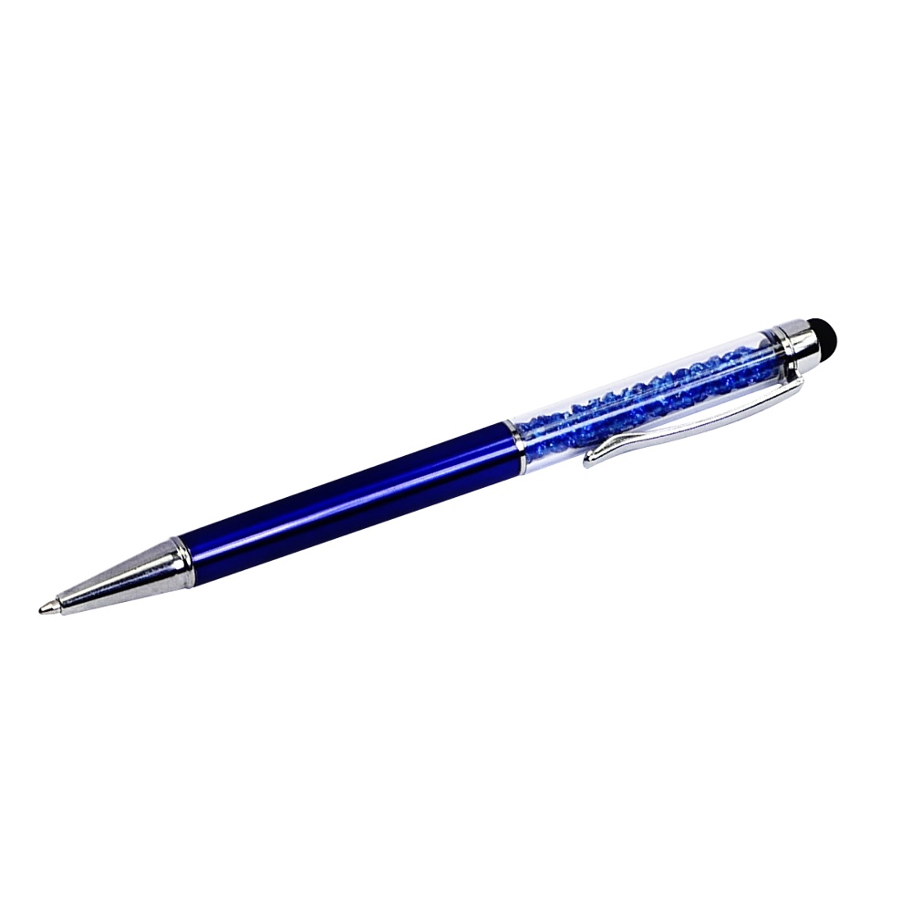 Стилус ёмкостный , с шариковой ручкой, металлический, синий с синими кристаллами