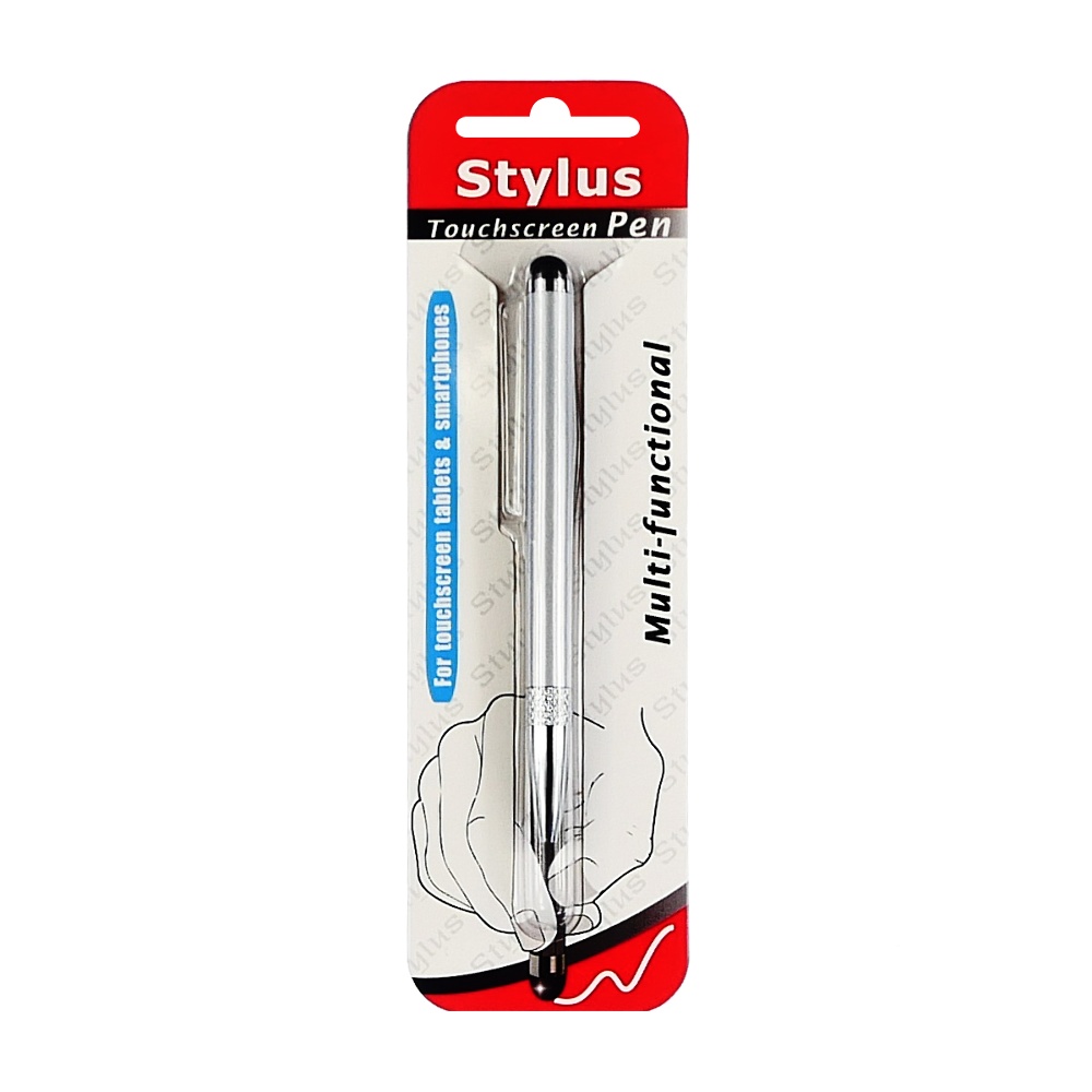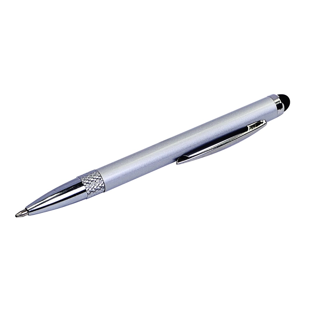 Стилус ёмкостный , с выдвижной шариковой ручкой, металлический, серебристый