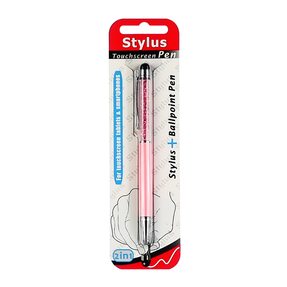 Стилус ёмкостный , с шариковой ручкой, металлический, розовый с розовыми кристаллами