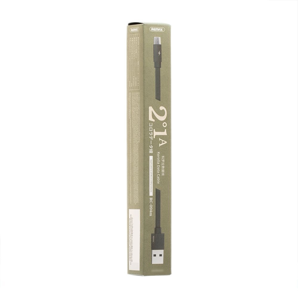 USB кабель Remax RC-094m Micro 2.1A 1m черный прекрасное решение для зарядки и синхронизации данных ваших гаджетов. Шнур тактильно приятный, выполнен из качественных износостойких материалов. Удобная длина кабеля 1m. Кабель USB Remax RC-094m позволяет не только заряжать ваши устройства, но и передавать данные на компьютер или смартфон.
