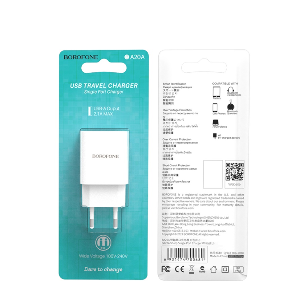 Borofone BA20A 1 USB 2.1A белое - универсальное зарядное устройство для ваших гаджетов. Подключается к электросети через стандартные розетки. Защищает заряжаемые устройства от перенапряжения, также присутствует смарт идентификация. Качественное зарядное устройство с защитой от короткого замыкания и перегрузки по току, понравится самым требовательным пользователям.