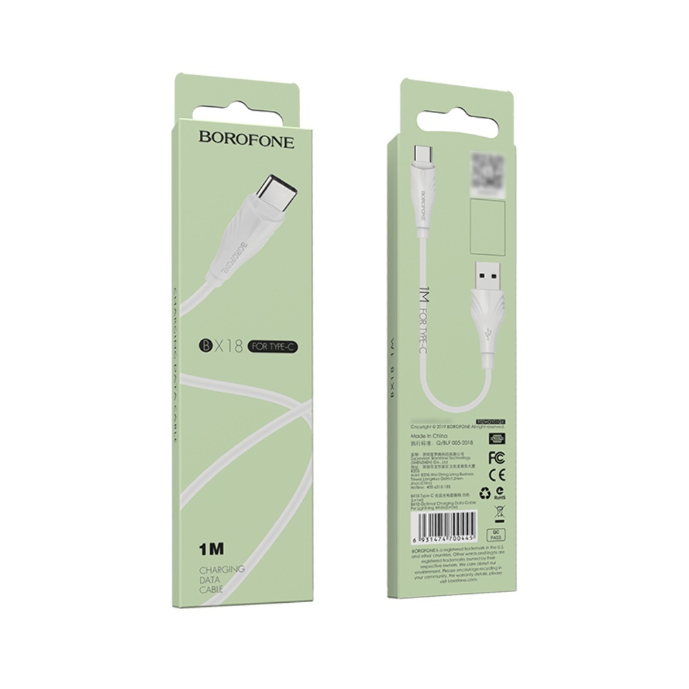 USB кабель Borofone BX18 Type-C 3A 1m белый прекрасное решение для зарядки и синхронизации данных ваших гаджетов. Шнур тактильно приятный, выполнен из качественных износостойких материалов. Удобная длина кабеля 1m. Кабель USB Borofone BX18 позволяет не только заряжать ваши устройства, но и передавать данные на компьютер или смартфон.