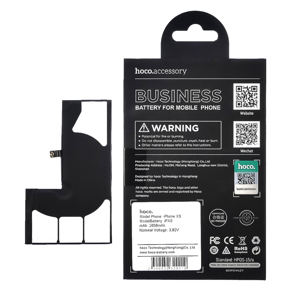 Аккумулятор Hoco для Apple iPhone XS, а также другие запчасти и аксессуары для мобильных телефонов и планшетов можно выгодно приобрести оптом в интернет-магазине MasterClub.