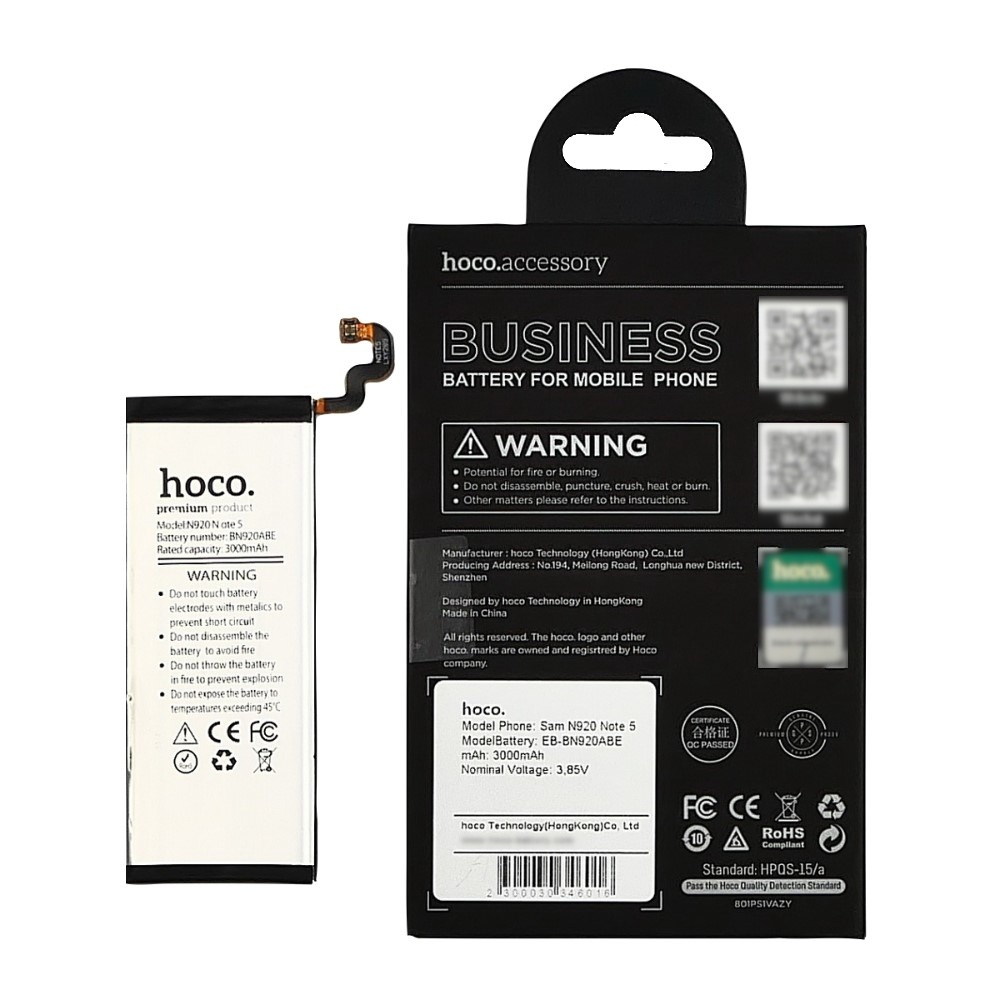 Аккумулятор Hoco EB-BN920ABE для Samsung N920 Note 5, а также другие запчасти и аксессуары для мобильных телефонов и планшетов можно выгодно приобрести оптом в интернет-магазине MasterClub.