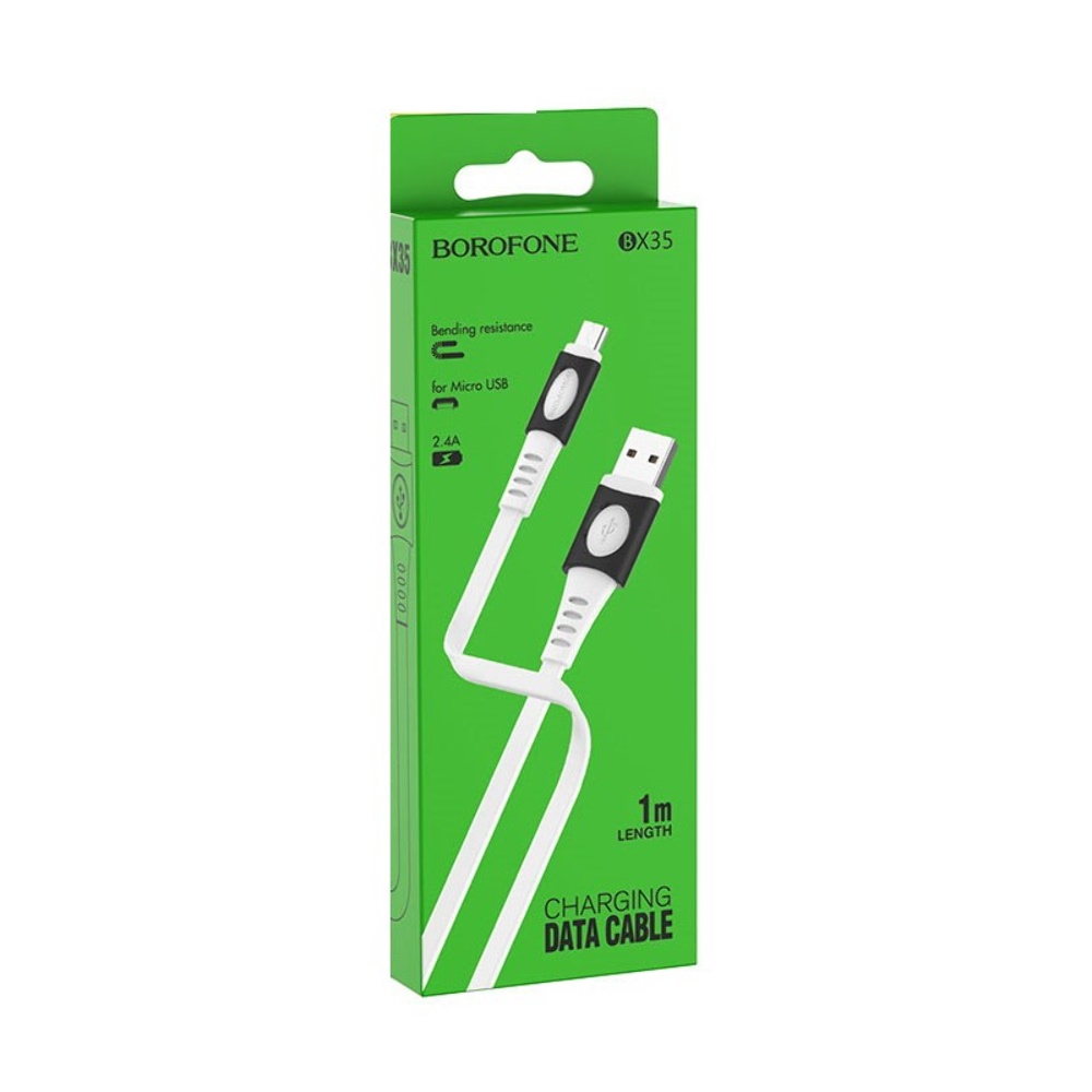 USB кабель Borofone BX35 Micro 2.4A 1m белый прекрасное решение для зарядки и синхронизации данных ваших гаджетов. Шнур тактильно приятный, выполнен из качественных износостойких материалов. Удобная длина кабеля 1m. Кабель USB Borofone BX35 позволяет не только заряжать ваши устройства, но и передавать данные на компьютер или смартфон.