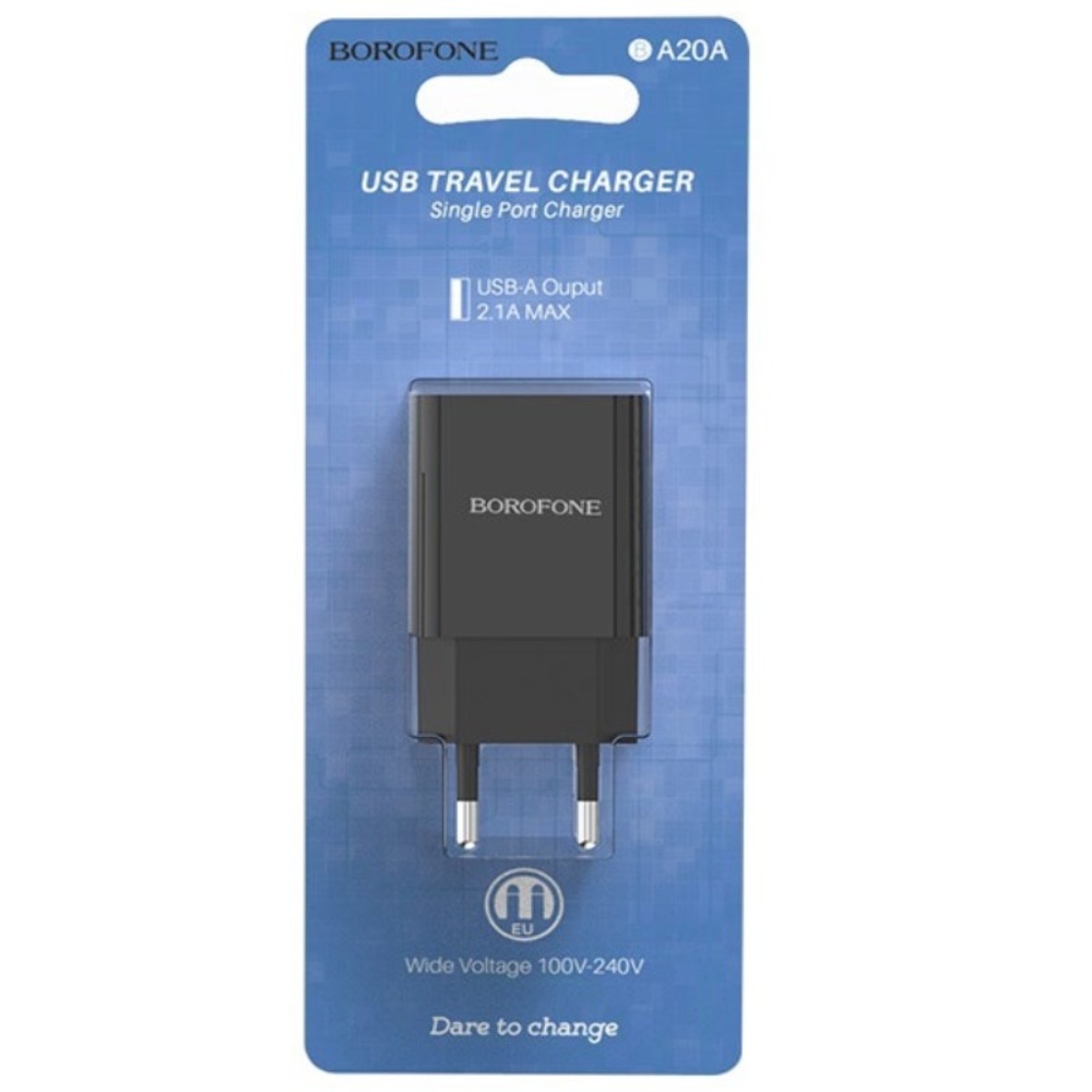 Borofone BA20A 1 USB 2.1A черного цвета - универсальное зарядное устройство для ваших гаджетов. Подключается к электросети через стандартные розетки. В зарядном устройстве предусмотрена многоуровневая система защиты от перегрева, перегрузки и короткого замыкания, присутствует смарт идентификация. Детали корпуса выполнены из пластика высокого качества, что делает устройства практичным и удобным в повседневной эксплуатации.