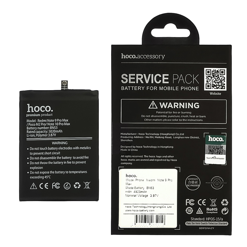Аккумулятор Hoco BN53 для Xiaomi Redmi Note 9 Pro Max/ Poco M2 Pro/ Note 10 Pro Max, а также другие запчасти и аксессуары для мобильных телефонов и планшетов можно выгодно приобрести оптом в интернет-магазине MasterClub.