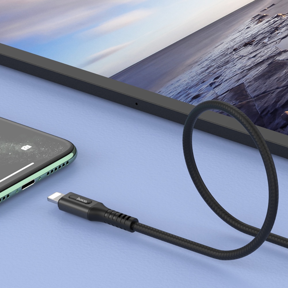 Кабель Hoco U79 с индикатором USB to Lightning черного цвета - это удобный и функциональный кабель длиной 1.2 метра, который обеспечивает быструю зарядку для устройств с разъемом Lightning.