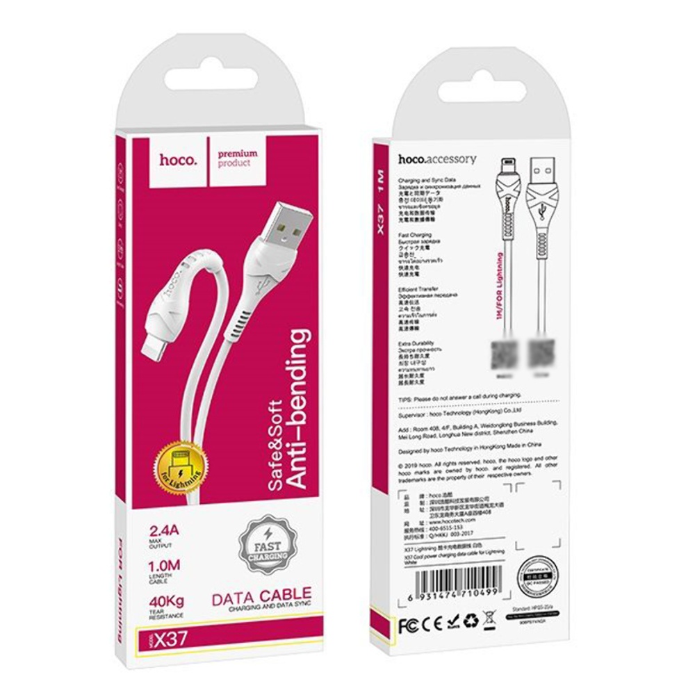 USB кабель Hoco X37 Lightning 2.4A 1m белый прекрасное решение для зарядки и синхронизации данных ваших гаджетов. Шнур тактильно приятный, выполнен из качественных износостойких материалов. Удобная длина кабеля 1m. Кабель USB Hoco X37 позволяет не только заряжать ваши устройства, но и передавать данные на компьютер или смартфон.