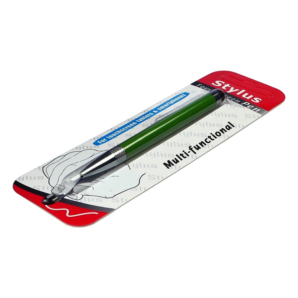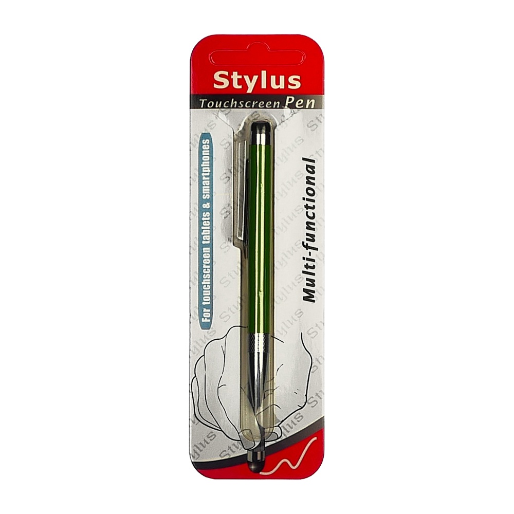 Стилус ёмкостный , с выдвижной шариковой ручкой, металлический, зелёный