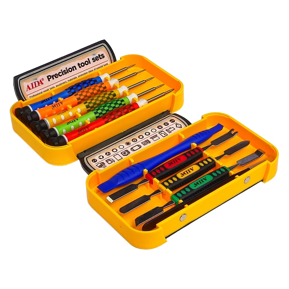 Набор инструментов Aida AD-3010 (отвёртки: Y0.6, -2.0, +1.2, *0.8, *1.2, 4 двухсторонних лопатки, пинцет прямой) — это универсальный комплект, предназначенный для ремонта и обслуживания различных электронных устройств. В набор входят высококачественные отвертки и лопатки, обеспечивающие точность и аккуратность при работе с мелкими деталями. Прямой пинцет позволяет легко манипулировать компонентами, а две двухсторонние лопатки дают дополнительные возможности для безопасного открытия корпусов без повреждений.