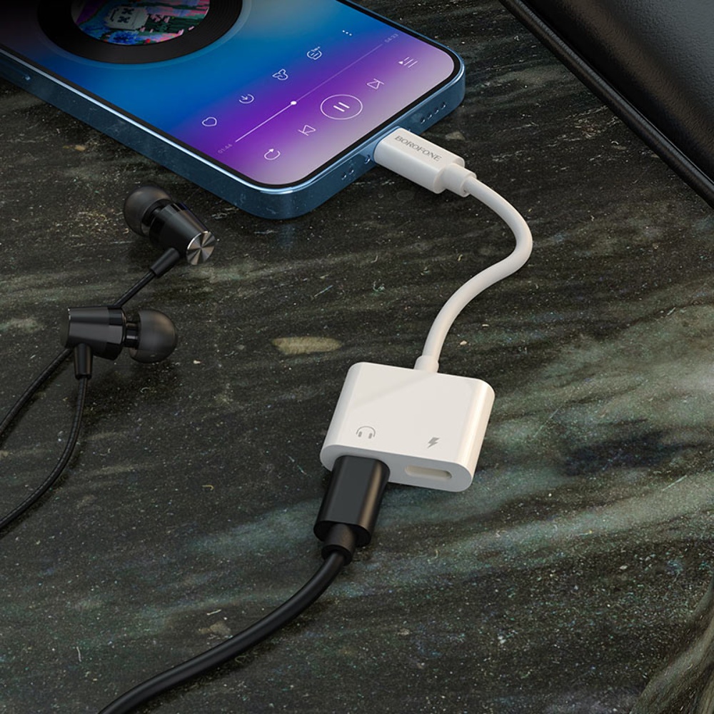 Адаптер переходник Borofone BV11 2в1 аудио конвертер Lightning to 2 Lightning (F) 0.124m белый