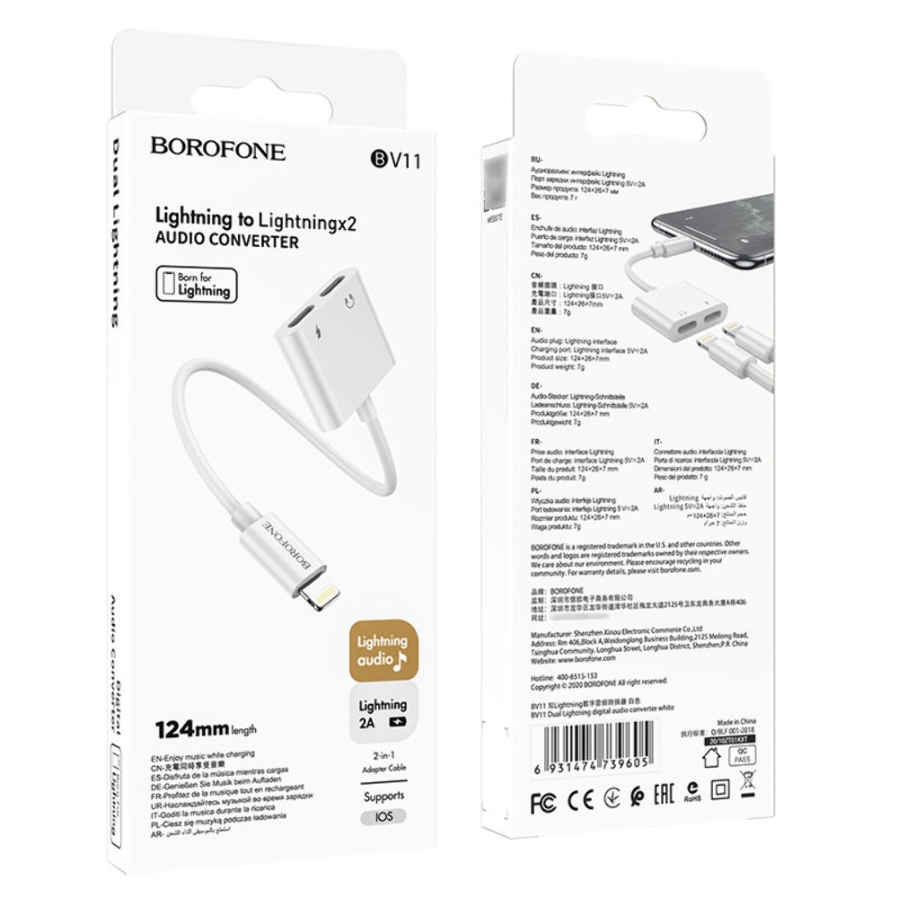 Аудиоадаптер Borofone BV11 разветвитель Lightning - 2 Lightning (F) 2A 0.124m белый предназначен для конвертирования аудиосигнала между разными интерфейсами. Выполнен из качественных материалов.