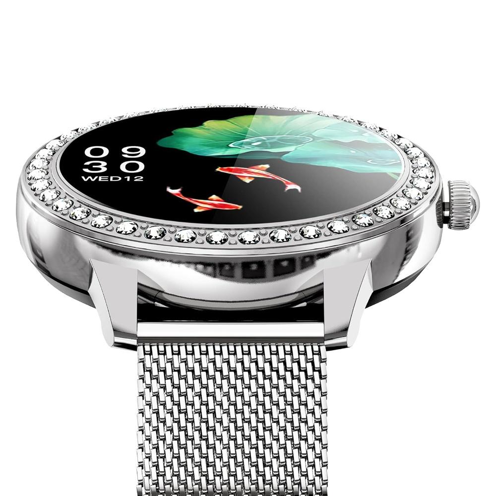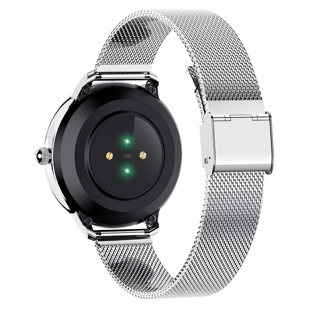Стильные универсальные часы, которые подойдут как подросткам, так и взрослым. Час поддерживают множество функций, среди которых уведомление о звонках, отбой звонка, отслеживание женского цикла, пульсометр, измерение артериального давления, мониторинг сна, мульти-спортивные режимы, нагомер, калории, расстояние, будильник, напоминание, секундомер и отслеживание пройденного расстояния посредством GPS. Аксессуар стойкий к износу, водонепроницаемый. Удобный металлический ремешок позволяет комфортно располагать гаджет на руке, возможна регуляция по длине ремешка. Для синхронизации со смартфонами часы оборудованы модулем Bluetooth 4.0, совместимы с устройствами под управлением Android и iOS. Часы оборудованы IPS дисплеем, разрешение 240*240 пикселей. Наличие нескольких циферблатов позволяет персонализировать гаджет. Корпус часов имеет компактные размеры и изготовлен из сплава цинка.