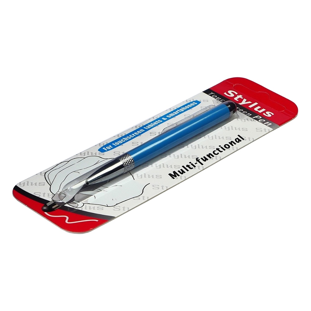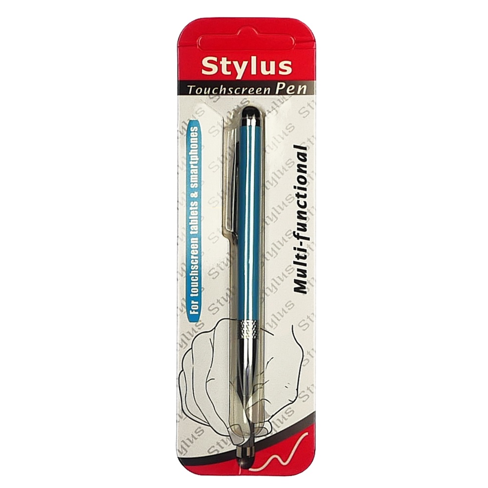 Стилус ёмкостный , с выдвижной шариковой ручкой, металлический, голубой