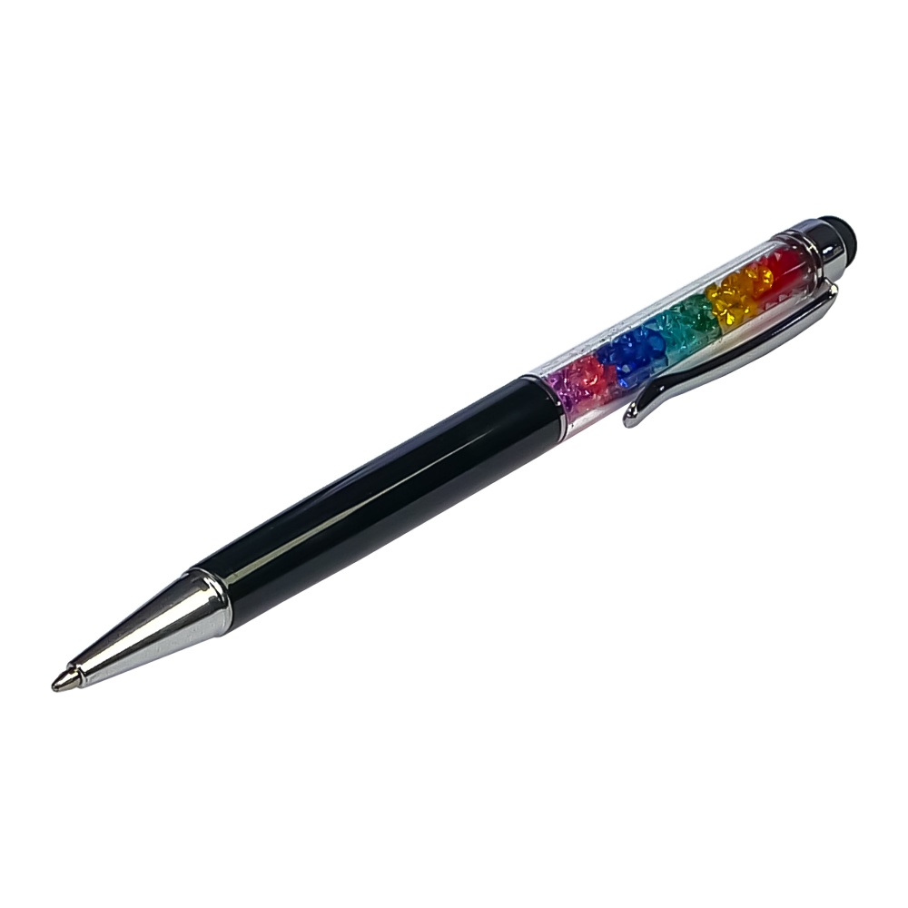 Стилус ёмкостный , с шариковой ручкой, металлический, чёрный с кристаллами цветов радуги