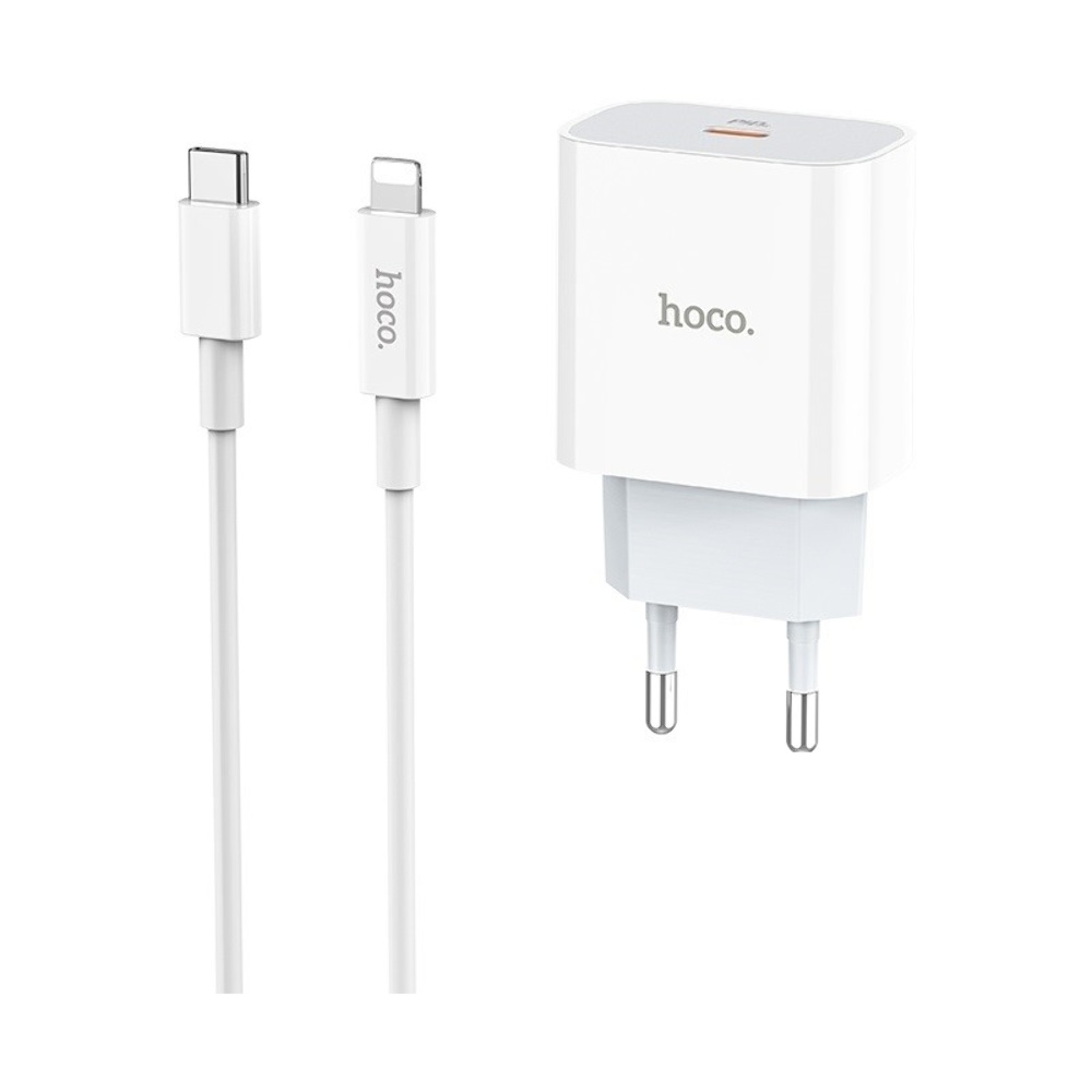 Сетевое зарядное устройство Hoco C76A Plus Type-C PD 20W белое + кабель Type-C to Lightning