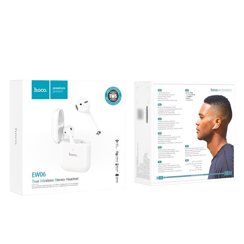 Беспроводные TWS наушники Hoco EW06 вкладыши белые – отличный выбор для меломанов. Наушники поддерживают технологию Bluetooth 5.1 которая обеспечивает сопряжение с устройствами IOS, Android и Windows. Нет никаких проводов. Необходимо только достать Bluetooth наушники из футляра и они готовы к использованию. Сенсорное управление и эргономичная форма наушников обеспечат максимальный комфорт при ежедневном использовании.