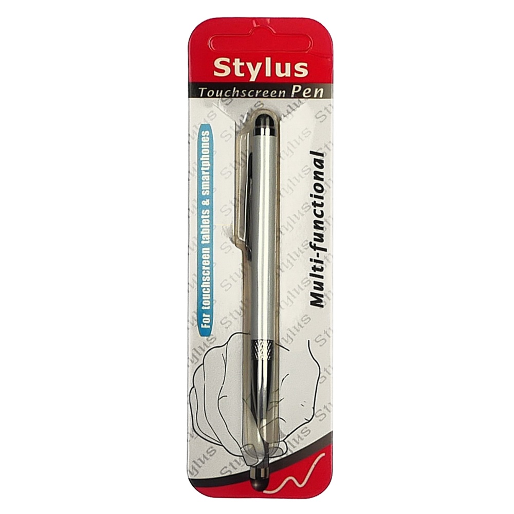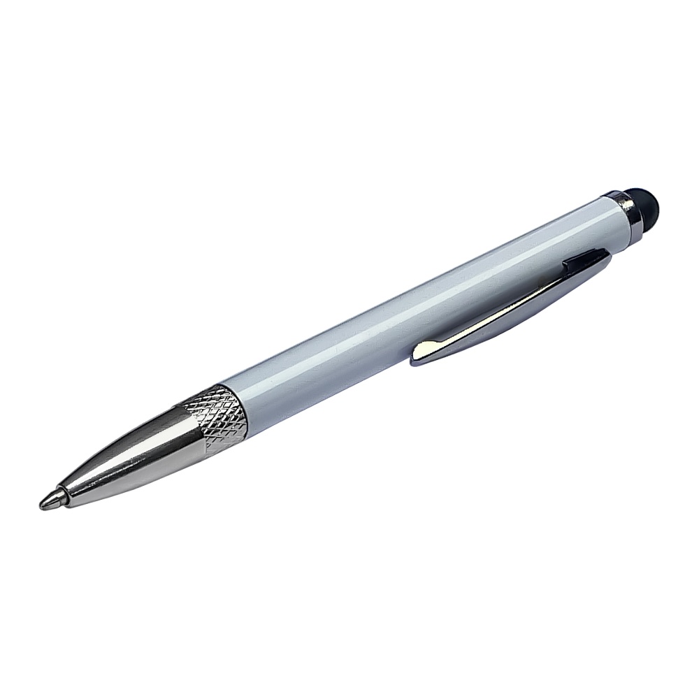Стилус ёмкостный , с выдвижной шариковой ручкой, металлический, белый