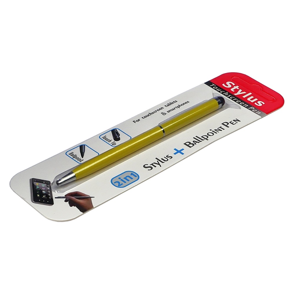 Стилус ёмкостный PS100, с шариковой ручкой, металлический, жёлтый