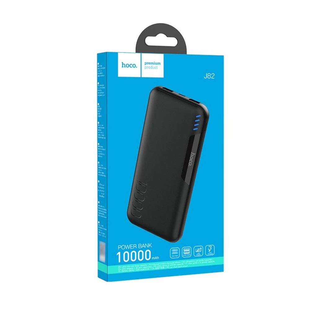 Power bank Hoco J82 емкостью 10000mAh черный - стильный и необходимый аксессуар для активных пользователей электронных устройств. Внешний аккумулятор Hoco J82 продлит автономную работу вашего смартфона, планшета или Смарт-часов. Power bank оснащен разъёмом USB и индикатором, который отображает информацию об уровне заряда аккумулятора.