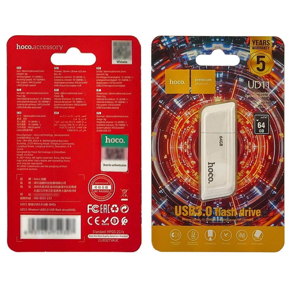 USB накопитель Hoco UD11 64GB USB 3.0 белый - прекрасный выбор для хранения и передачи данных. Он имеет достаточно большую емкость, а также быстрый интерфейс USB 3.0.