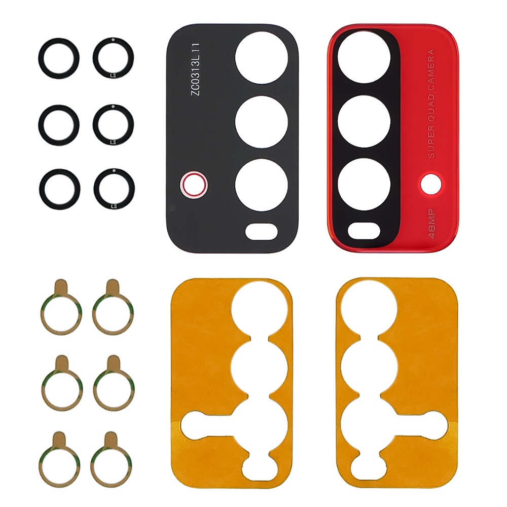 Стекло камеры для Xiaomi Redmi 9T (комплект 3 шт.) с оранжевой рамкой