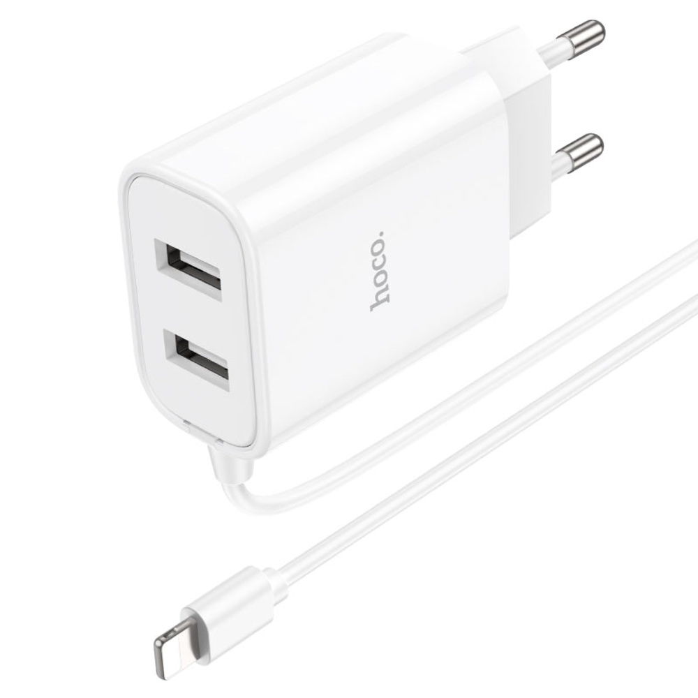 Сетевое зарядное устройство Hoco C103A 2.1A 2 USB со встроенным кабелем Lightning белого цвета - отличный выбор для зарядки Ваших устройств.