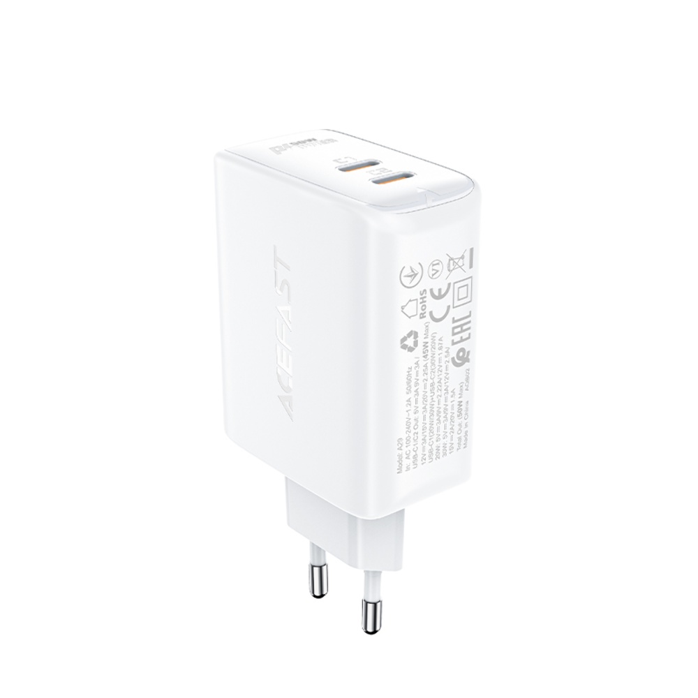 Сетевое зарядное устройство Acefast A29 2 Type-C QC PD 50W белое