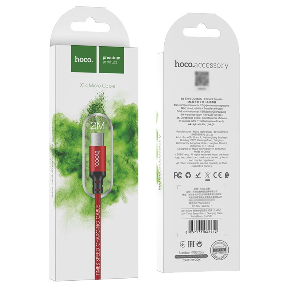 Кабель Hoco X14 USB to MicroUSB 2m черно-красный - это прочный и надежный кабель, который обеспечивает стабильную передачу данных и зарядку устройств.