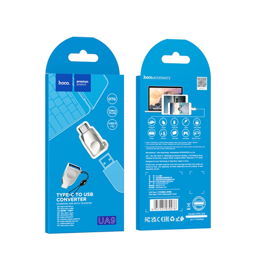 Адаптер переходник Hoco UA9 Type-C to USB 3.0 (F) серебристый - это незаменимый аксессуар для тех, кто хочет использовать свой устройство с разъемом Type-C для передачи данных или зарядки устройств с разъемом USB. Этот адаптер отличается надежностью, компактным размером и легким весом.