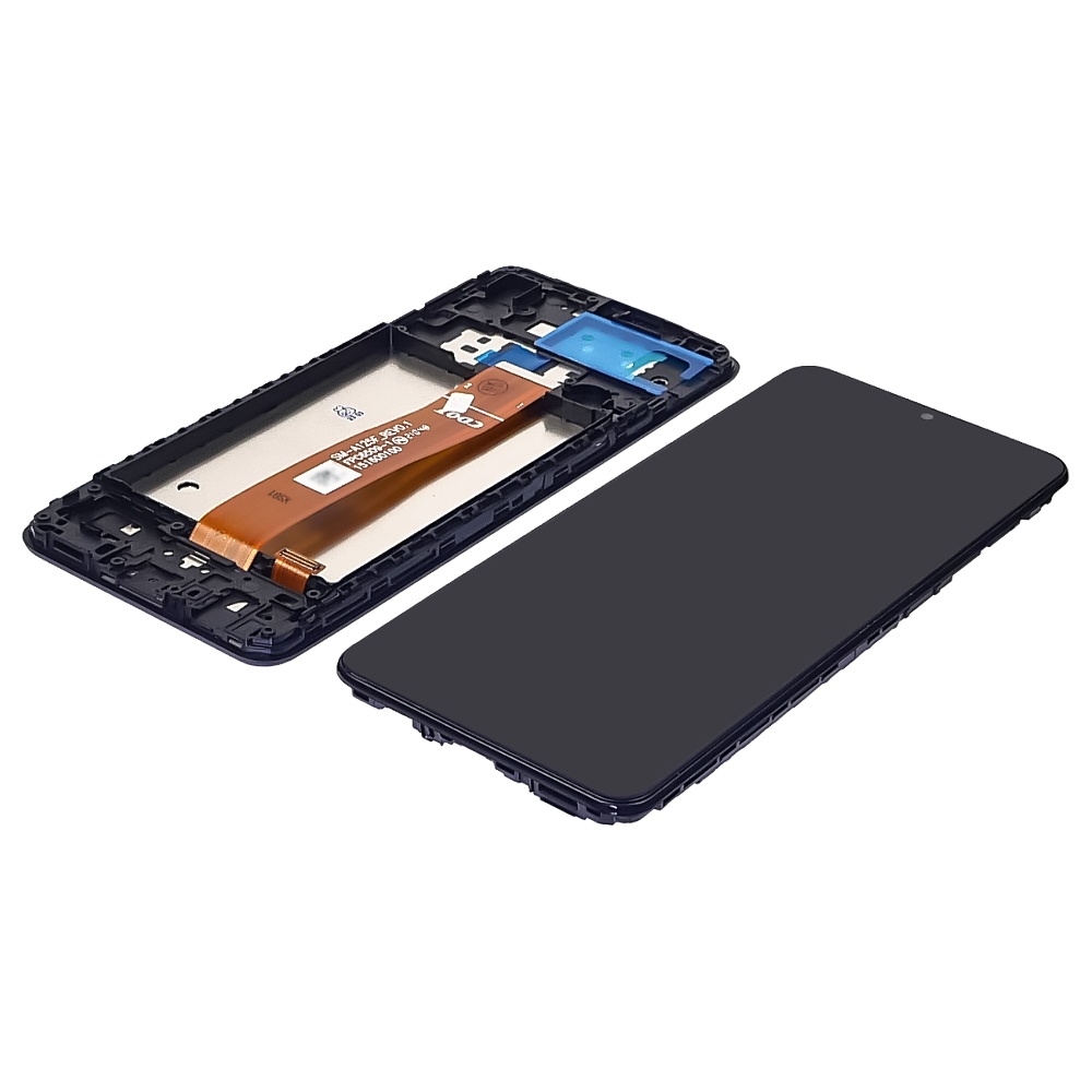Дисплейный модуль для Samsung A125F Galaxy A12 с чёрным тачскрином и корпусной рамкой предназначен для замены повреждённого дисплея и полностью совместим с указанной моделью.