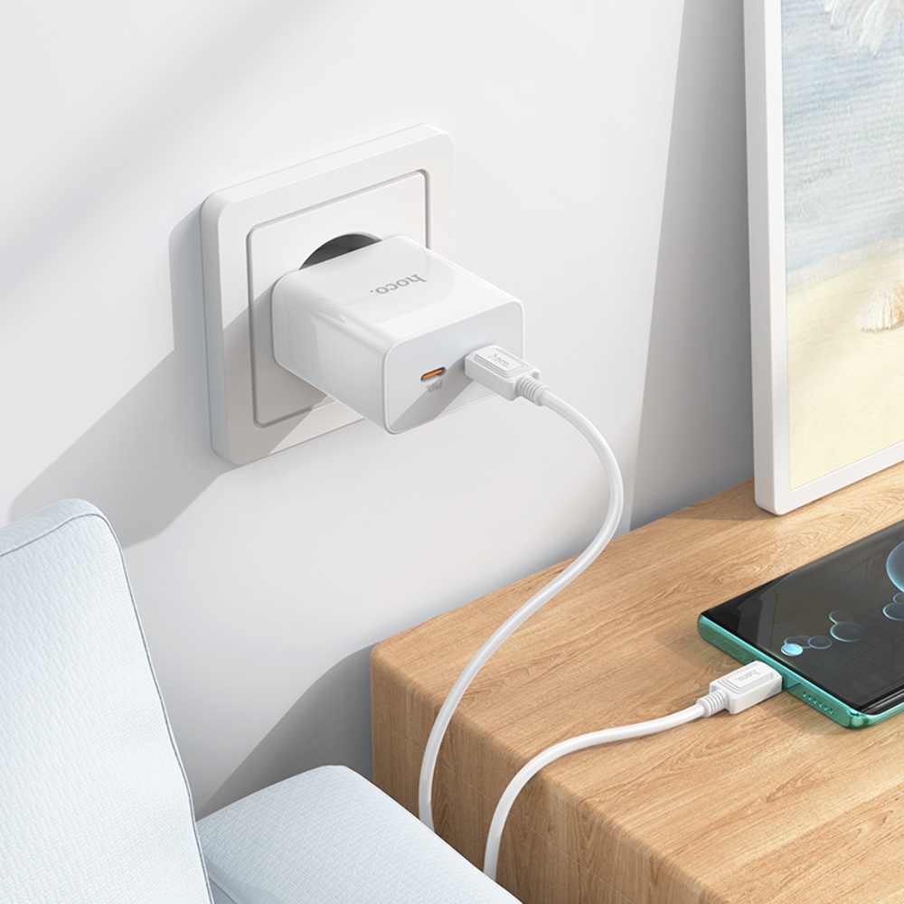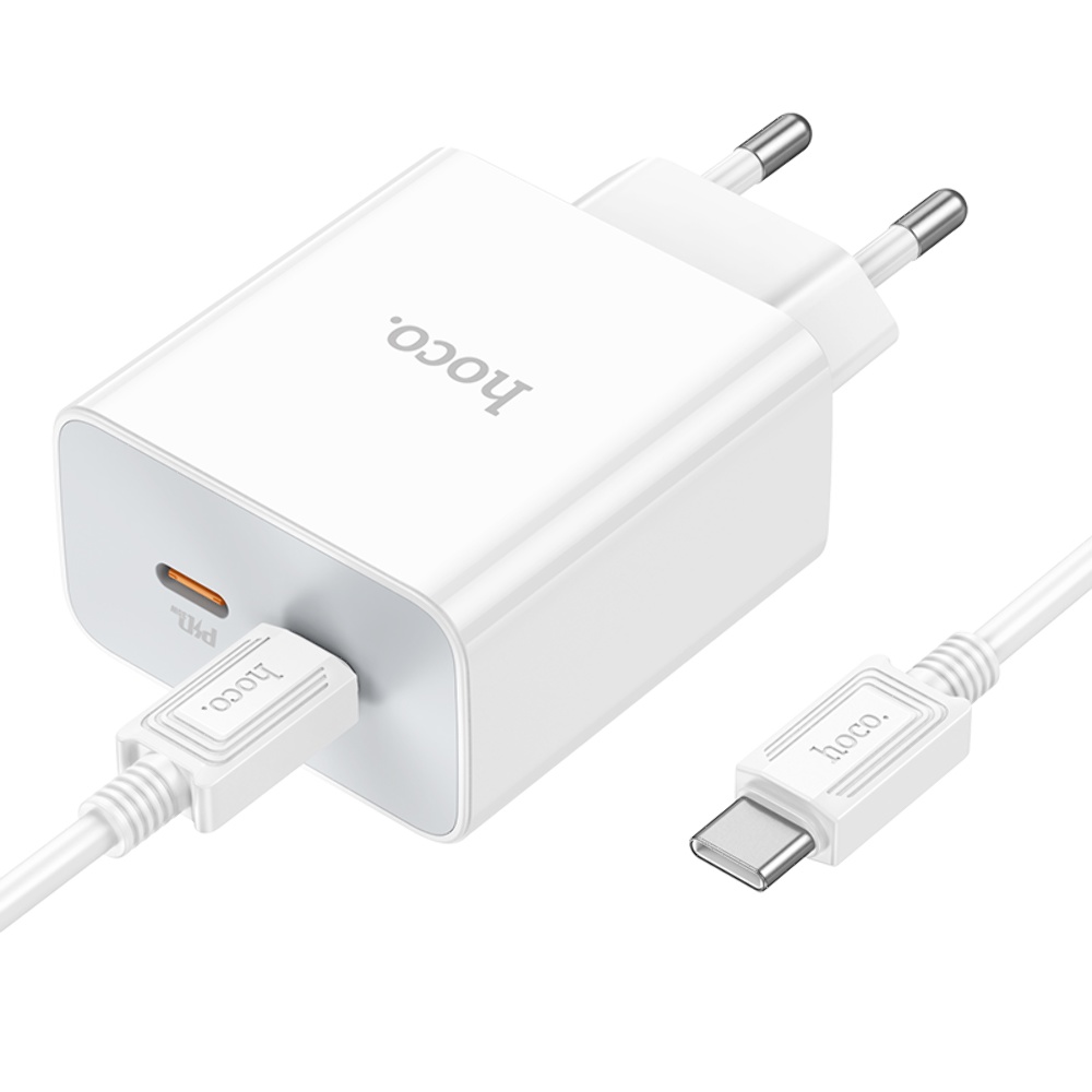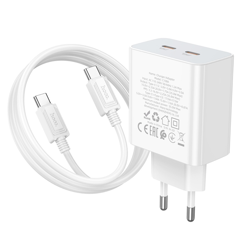 Сетевое зарядное устройство Hoco C108A 2 Type-C PD 35W белое + кабель Type-C to Type-C