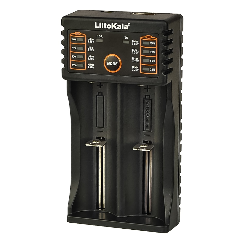 Управлением зарядным устройством LiitoKala Lii-202 осуществляется с помощью кнопки "MODE":
