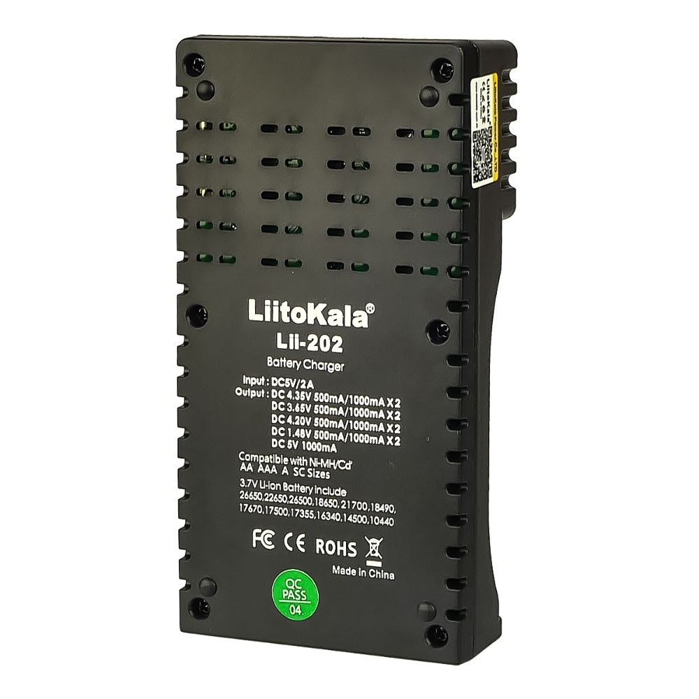 Универсальное зарядное устройство LiitoKala Lii-202 - предназначенное для зарядки большинства видов цилиндрических аккумуляторных батарей: литий-ионных, литий-железо-фосфатных, никель-кадмиевых и никель-металл-гидридных.