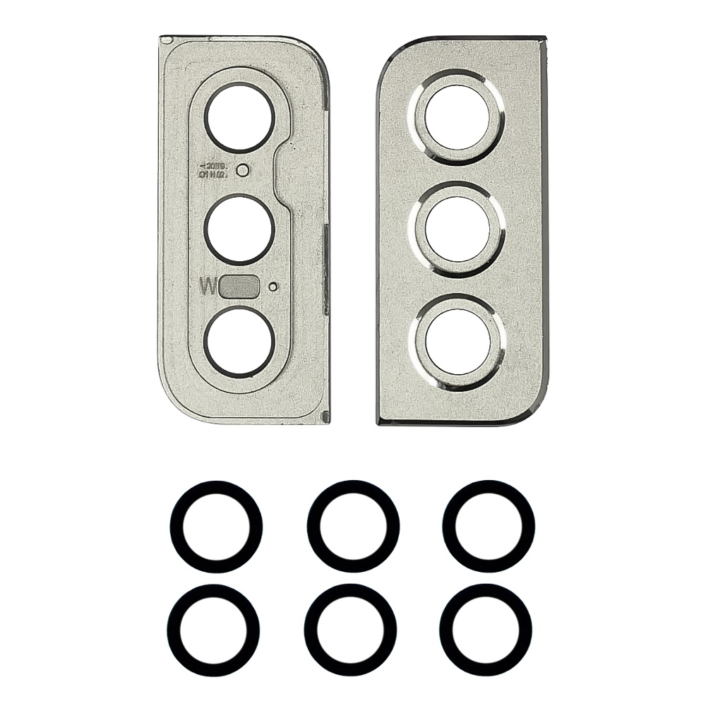 Стекло камеры для Samsung G991 Galaxy S21 (2021) (комплект 3 шт.) с серебристой рамкой