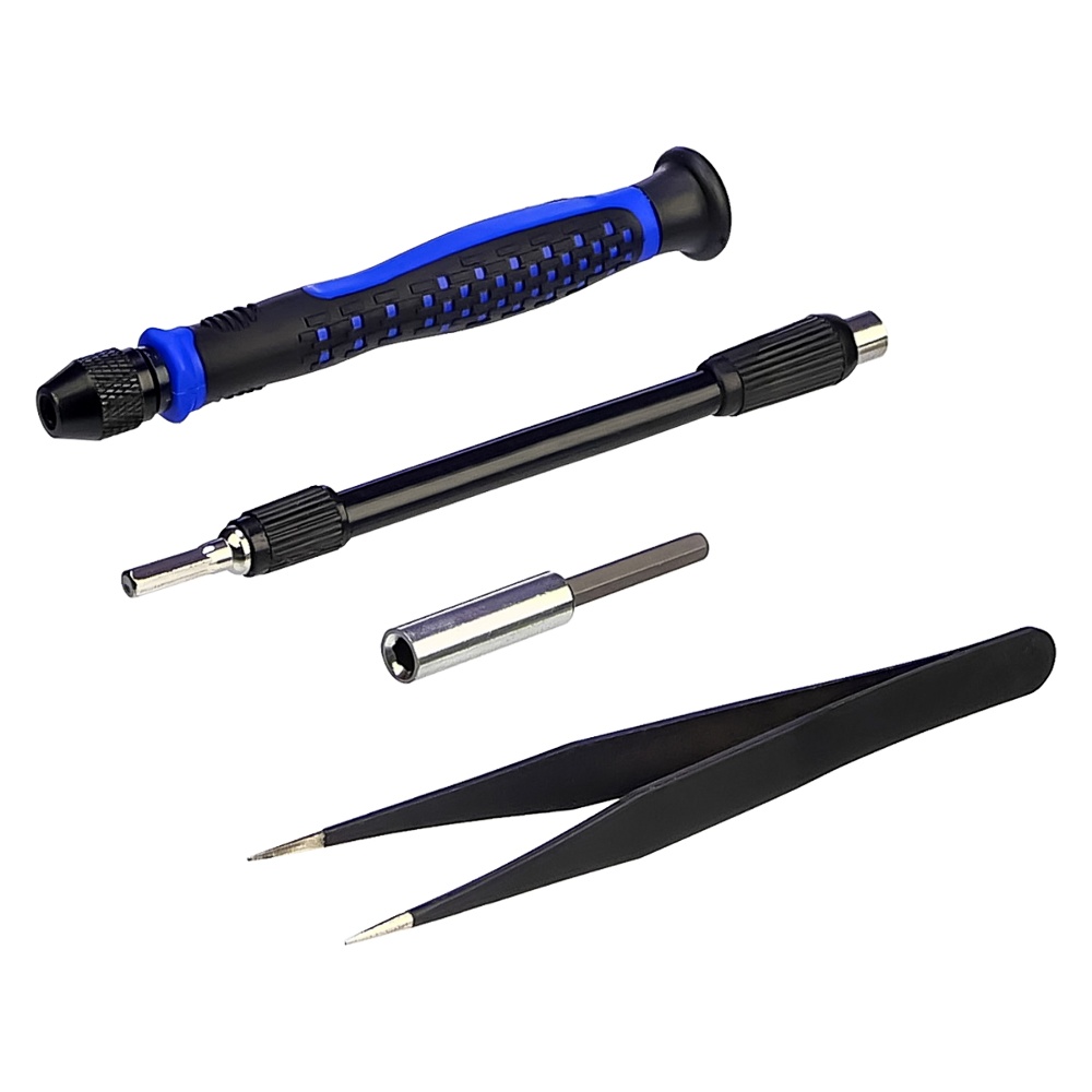 - Включает 2 удлинителя, пинцет, 9 оупентулов и кисточку ESD для различных задач по ремонту и фиксации.