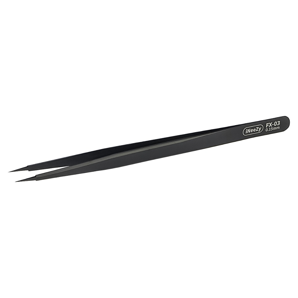 Пинцет в футляре прямой QianLi iNeezy FX-03, 132 x 7 мм, наконечники 0.15 мм, сталь HRC40, чёрное антистатическое покрытие